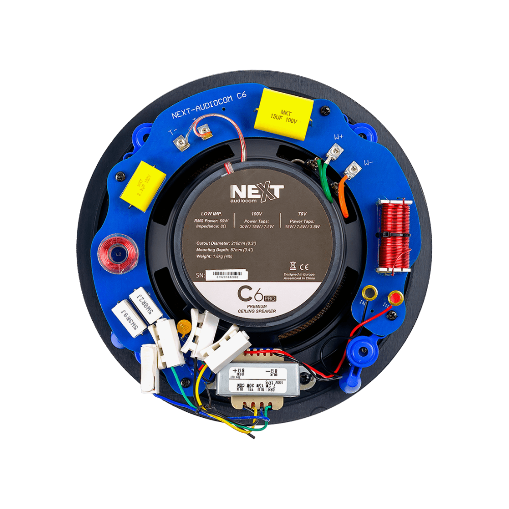 The integrated transformer allows you to use the speaker at 100V line or low impedance 8Ω depending on the needs of your installation.